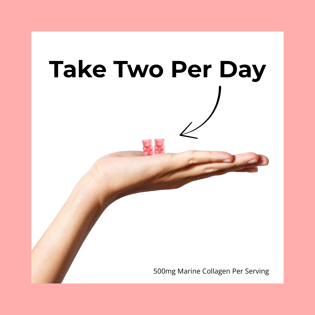 Glow from within. 500mg Marine Collagen + Glutathione + Biotin + essential vitamins — in sugar-free strawberry gummies for radiant skin, hair & nails.